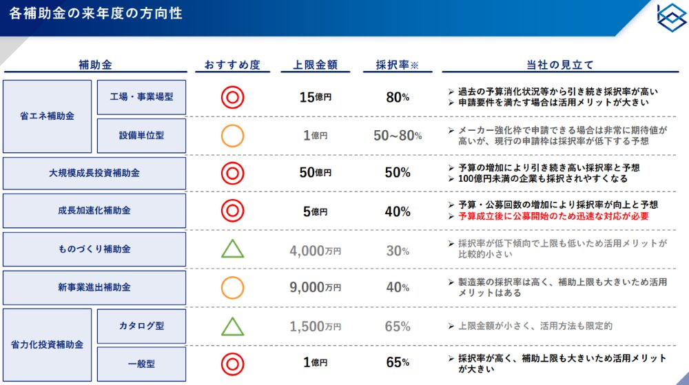 各補助金の公募開始時期や詳細な要件は、今後数ヶ月の間に順次発表されます。