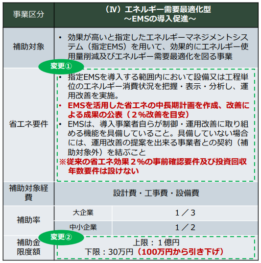 - (Ⅳ)エネルギー需要最適化型:EMSの導入が補助されます。