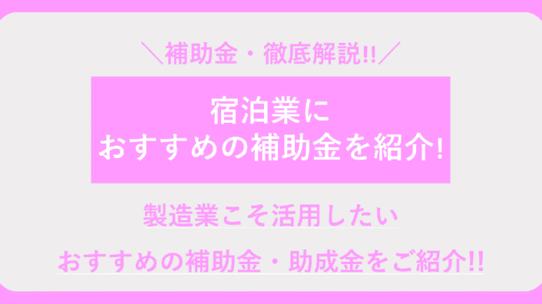 宿泊業の設備投資に活用できる補助金には、主に以下の3種類があります。