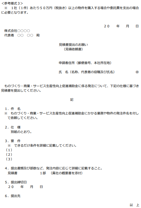 見積書や相見積書の様式は一般に取引で使用されている様式で構いません。