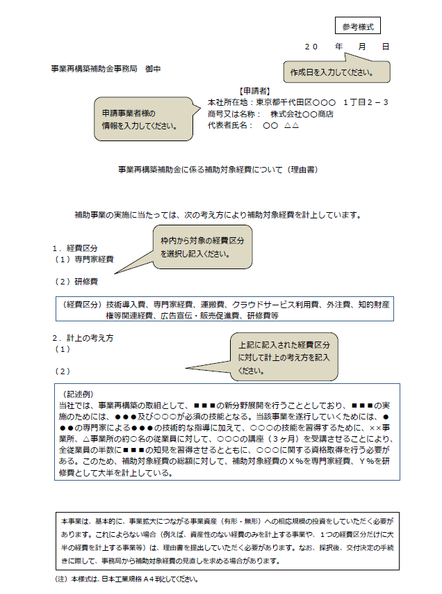 事業再構築補助金の理由書には「補助対象経費理由書」もある