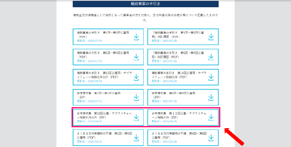 3.「補助事業の手引き」から「参考様式集(ZIP)」をクリックし、ダウンロードする