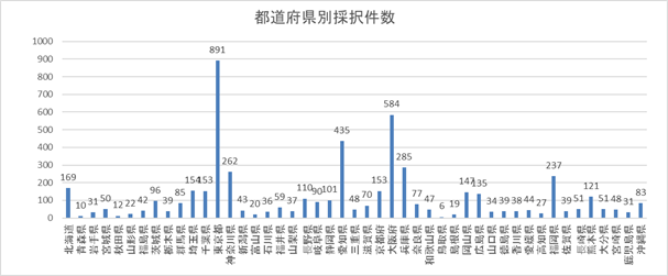 都道府県別で今回の採択結果を整理すると以下のようになります。