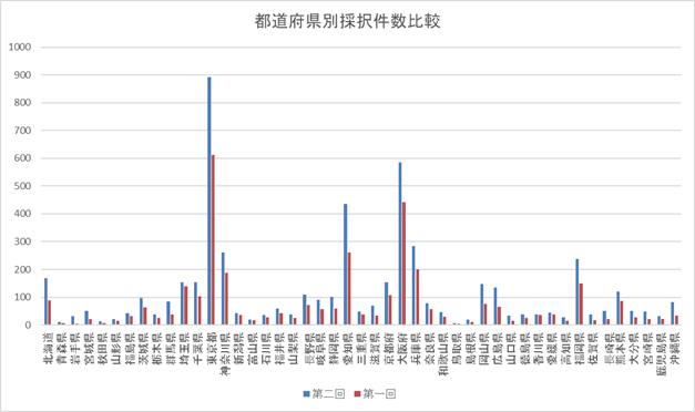 なお、第一回の都道府県別採択件数と比較すると以下のようになっています。