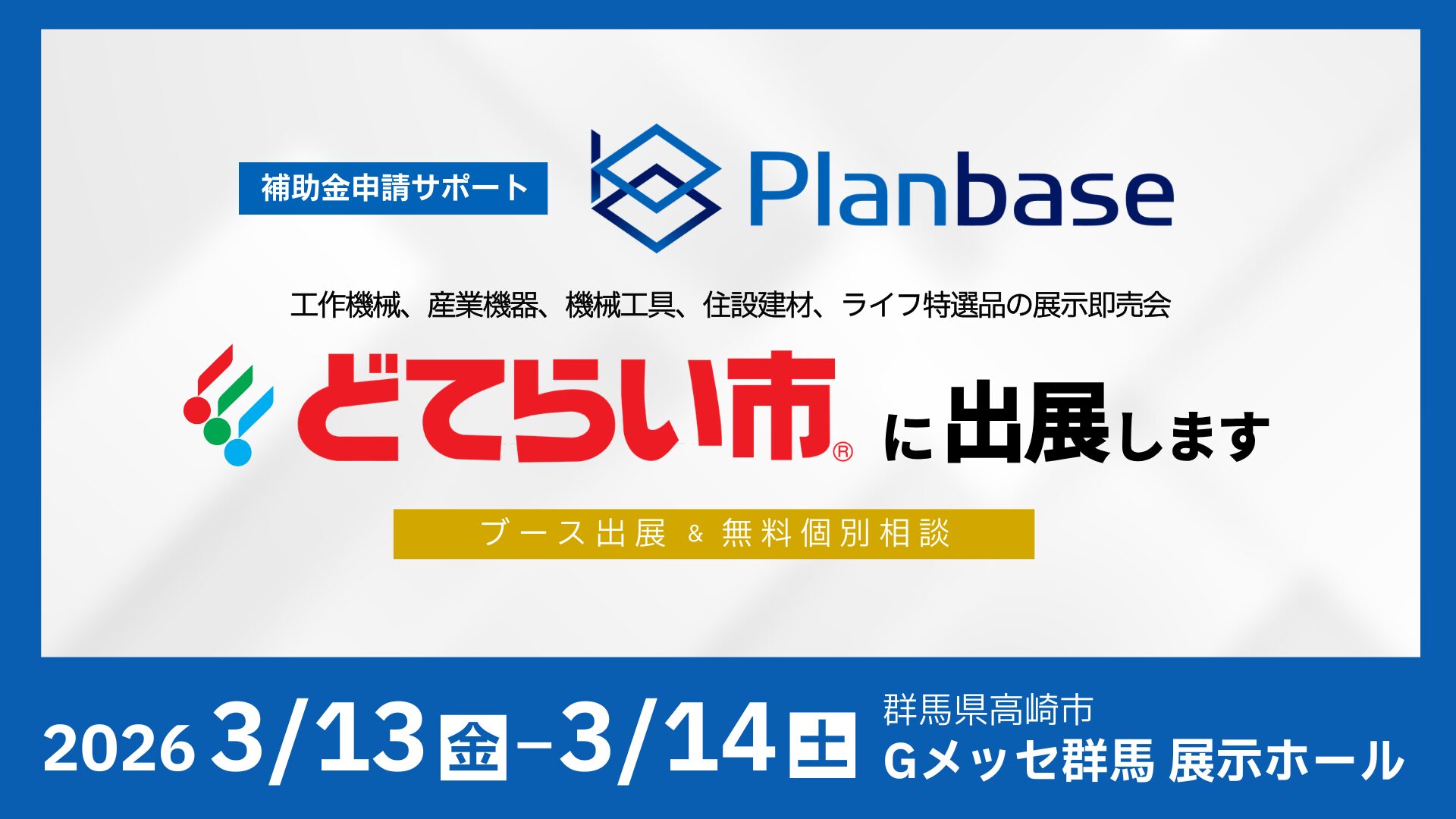 「2026北関東どてらい市」に出展、設備投資に向けた補助金の活用方法を無料相談|株式会社プランベース