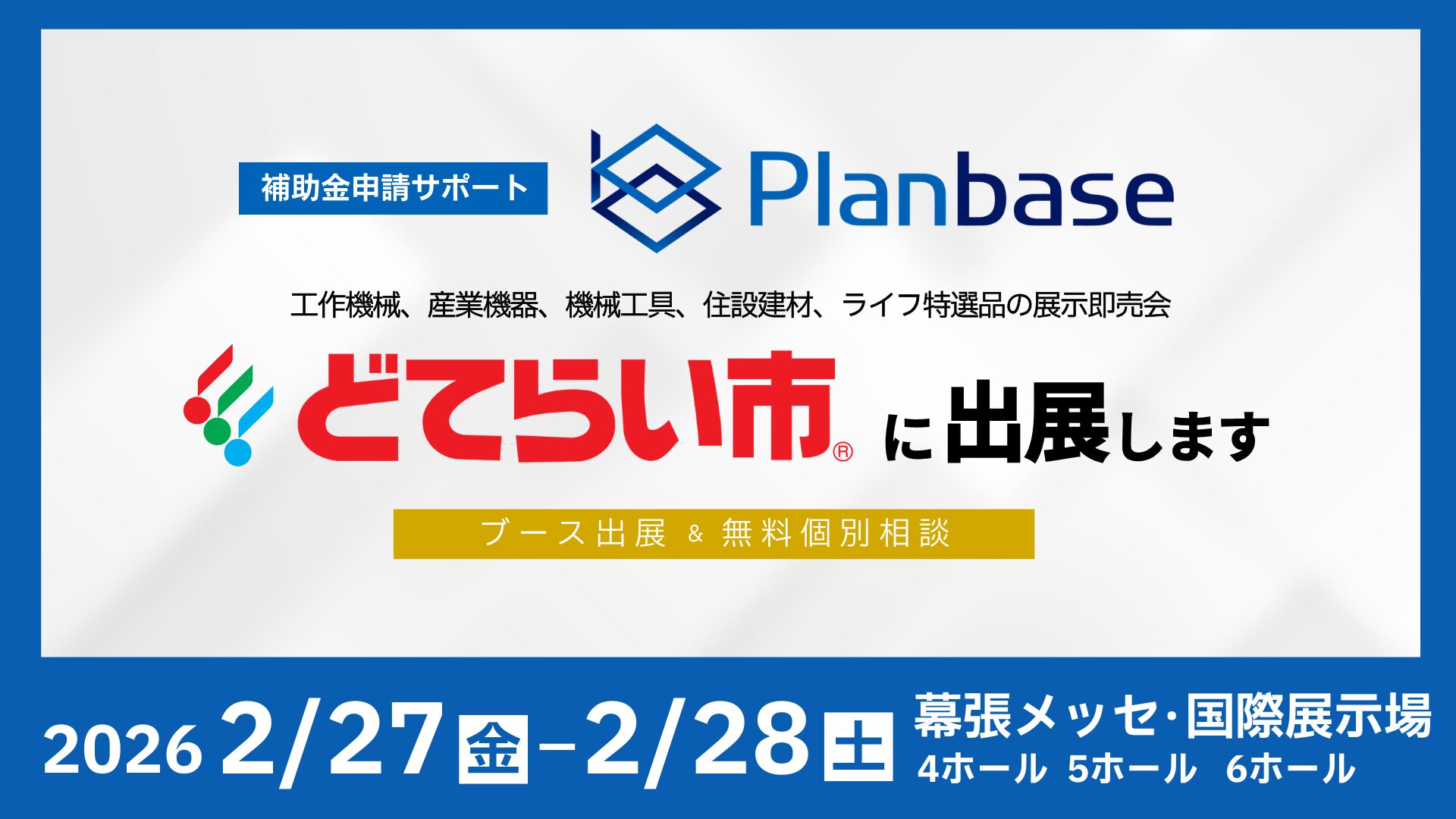 「2026幕張どてらい市」に出展します 設備投資に向けた補助金の活用方法を無料相談|株式会社プランベース