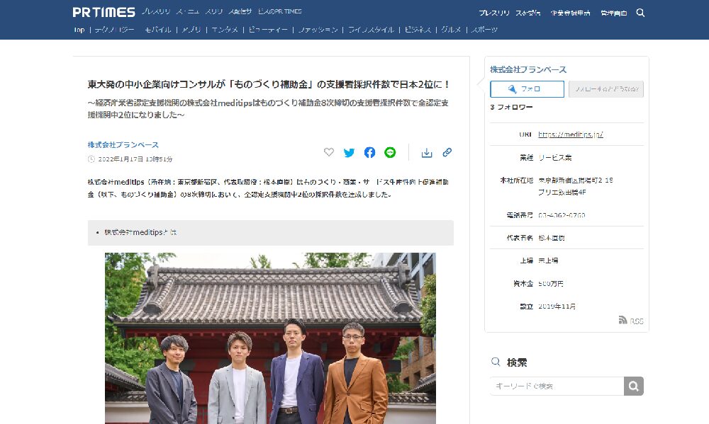佐藤様:ものづくり補助金の申請は初めてでしたので、申請の際はもちろん、採択後の手続きについても不安な点が多々ありました。そんな中でプランベースさんには申請から補助金の受取まで一気通貫で支援していただき、とてもスムーズに手続きを進めることができました。この記事をご覧になっている方も、どの会社に支援を依頼するか迷っているようでしたらぜひ一度、プランベースさんに問い合わせてみてください。この度はありがとうございました!